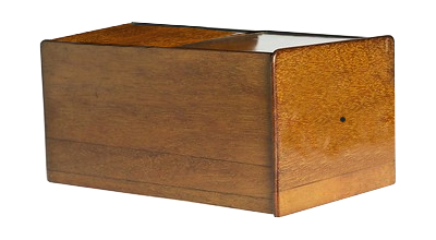 Wielkość otrzymywanego obrazu regulowano bądź jak tutaj, przesuwając przednią ściankę z otworem, bądź tylną z wyświetlanym obrazem.