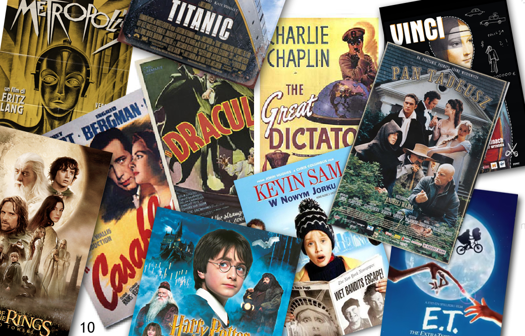 10. Garstka plakatów filmowych. Od roku 1906, kiedy powstał w Australi pierwszy na świecie film fabularny (Historia gangu Kelly'ego) nagrano dziesiątki jeśli nie setki tysięcy filmów. I nagrywa się je nadal, bo my wszyscy lubimy kino.