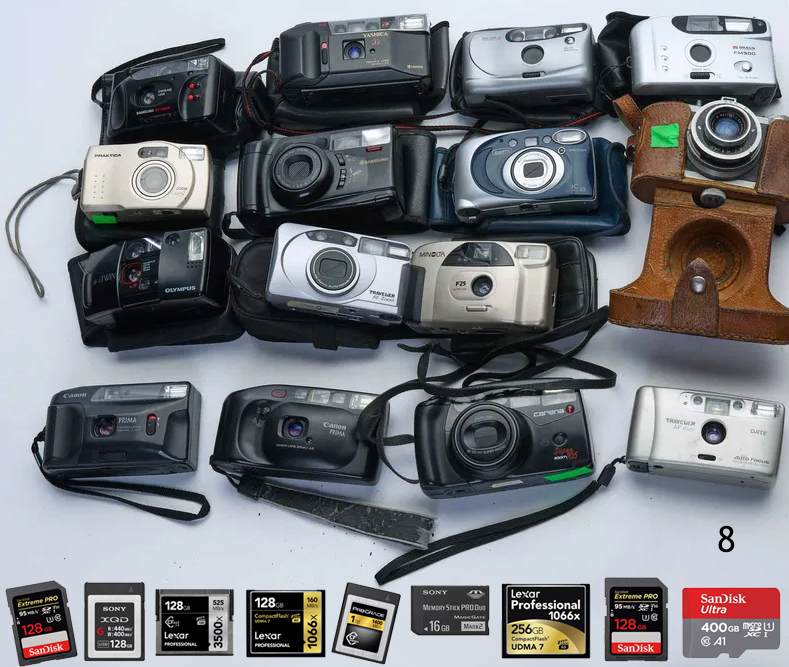 7. Pierwszy aparat cyfrowy dla użytkowników indywidualnych (FUJIX DS-1P, 1987/88). Wykorzystywał karty pamięci 2 MB do przechowywania danych.