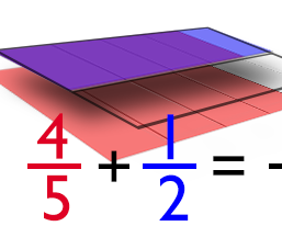 Dodawanie ułamków na jednej całości z przesuwaniem kawałków.