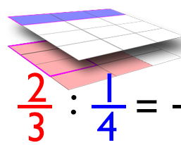 Graficzne wyjaśnienia "ile razy jeden ułamek zmieści się w drugim".