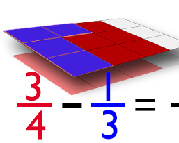 Odejmowanie ułamków z usuwaniem kawałków.