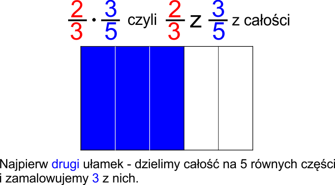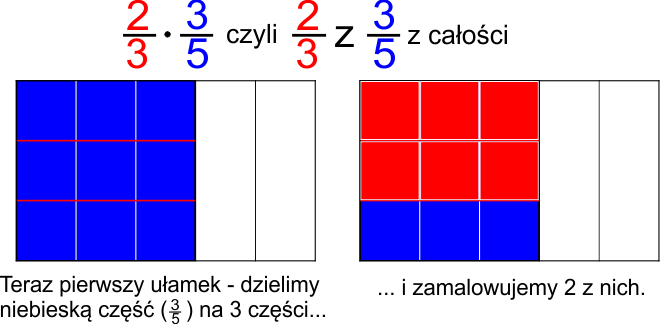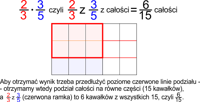 Idea pierwszego programu graficznej interpretacji mnożenia ułamków opiera się na obliczaniu ułamka z liczby, którą akurat tutaj jest drugi ułamek.