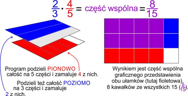 Idea drugiego programu graficznej interpretacji mnożenia ułamków opiera się na części wspólnej obu ułamków.