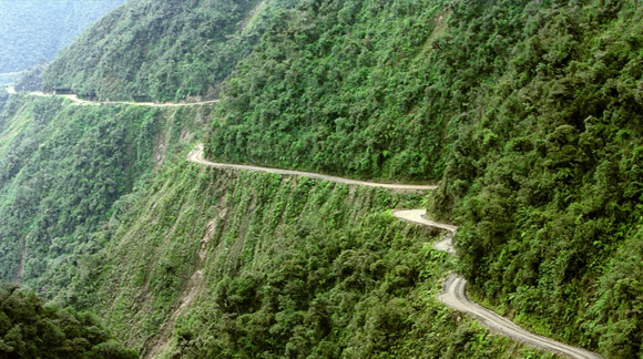 Zad. 7 Za jedną z najbardziej niebezpiecznych dróg świata uważa się North Yungas Road  w Boliwii. Zobacz na widoku z ulicy  fragment tej drogi.