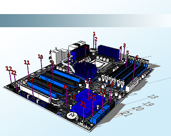 Opis elementów płyty głównej komputera w ruchomym 3D