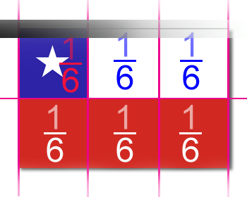 Łatwe i trudne przykłady na określanie ułamkiem kolorowej części flagi.