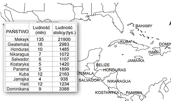 Ćwiczenia podobne do tych z początku klasy V: poszukiwanie na dwóch mapach państw/miast, odczyt danych z tabel, konwersja zapisu skrótowego mln czy tys. na zapis cyframi, obliczenia pamięciowe lub pisemne.