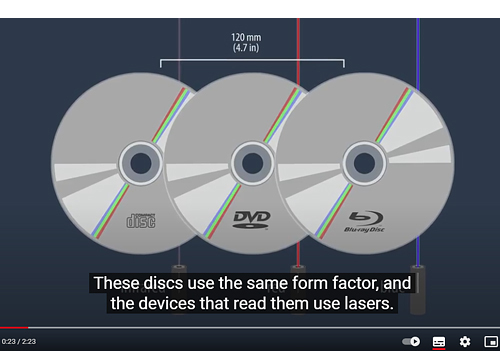 Angielskojęzyczna animacja pokazująca różnice pomiędzy technologiami CD, DVD a Blu-Ray.