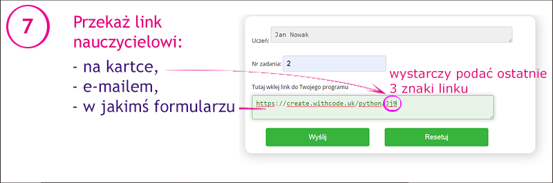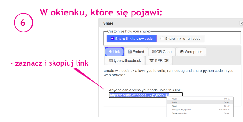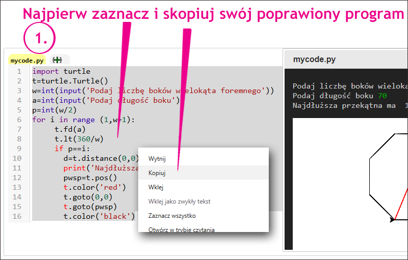 Jak przekazać komuś (np. nauczycielowi) swój program napisany w okienku na tej stronie? Pokazuje to podana niżej instrukcja.