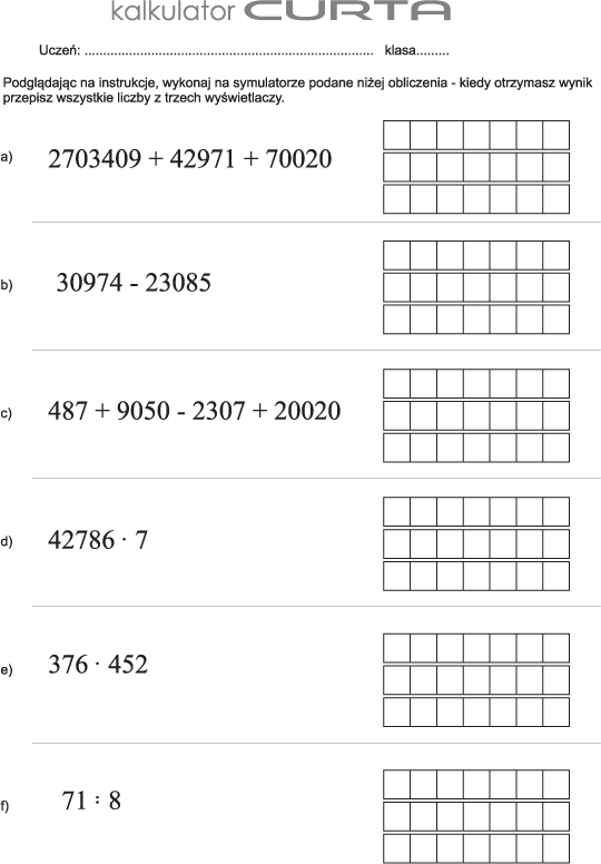 Symulator najsłynniejszego ręcznego kalkulatora. Doskonałe ćwiczenie do wykonywania logicznych czynności na podstawie instrukcji.