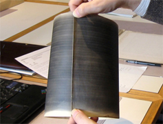 - rysik dotykał zwiniętego w cylinder papieru pokrytego sadzą,