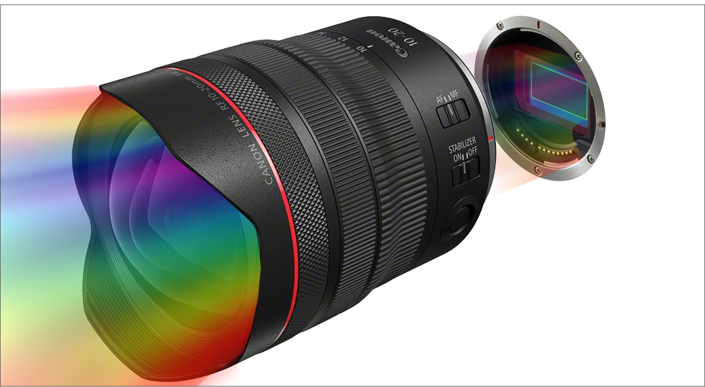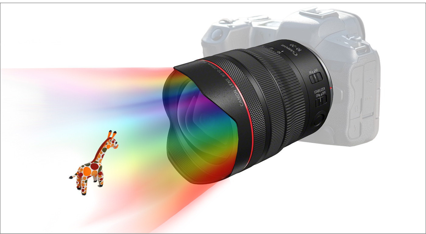Po drodze światło przechodzi najczęściej przez dwa filtry (czerwone strzałki), które pochłaniają światło poczerwone i ultrafioletowe. Te dwa zakresy światła są dla nas niewidzialne, ale widzą je komórki światłoczułe w matrycy, co oznacza, że znacznie zakłóciłyby otrzymany obraz; np. zbyt jasne obiekty na zdjęciu nocnym (praktycznie wszystko emituje światło podczerwone) lub fałszywe kolory na zdjęciach (to byłby wpływ światła ultrafioletowego).