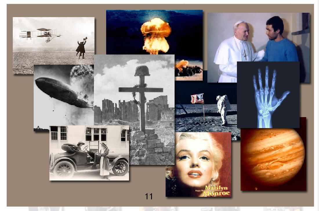 11. Trudno znaleźć od XX wieku ważne wydarzenie, które nie zostało by sfotografowane lub sfilmowane.