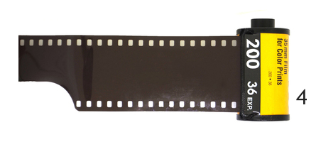 4. Rolka z błoną fotograficzną. Taśma posiadała najczęściej 8 ultracienkich warstw z filtrami i emulsjami światłoczułymi na dane kolory.