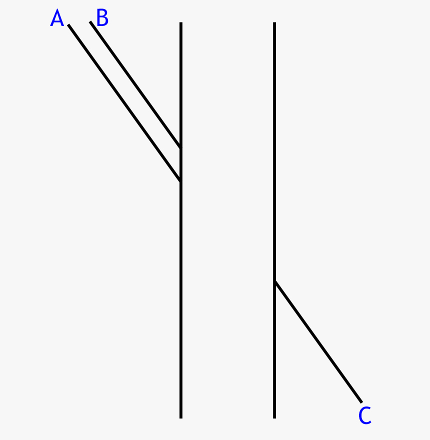 Wydaje nam się, że linia C jest przedłużeniem linii A, ale to nieprawda! Trzeba to graficznie udowodnić.