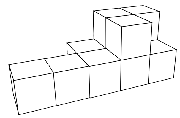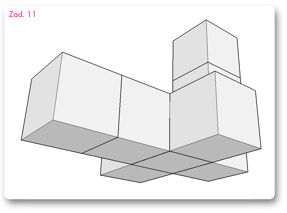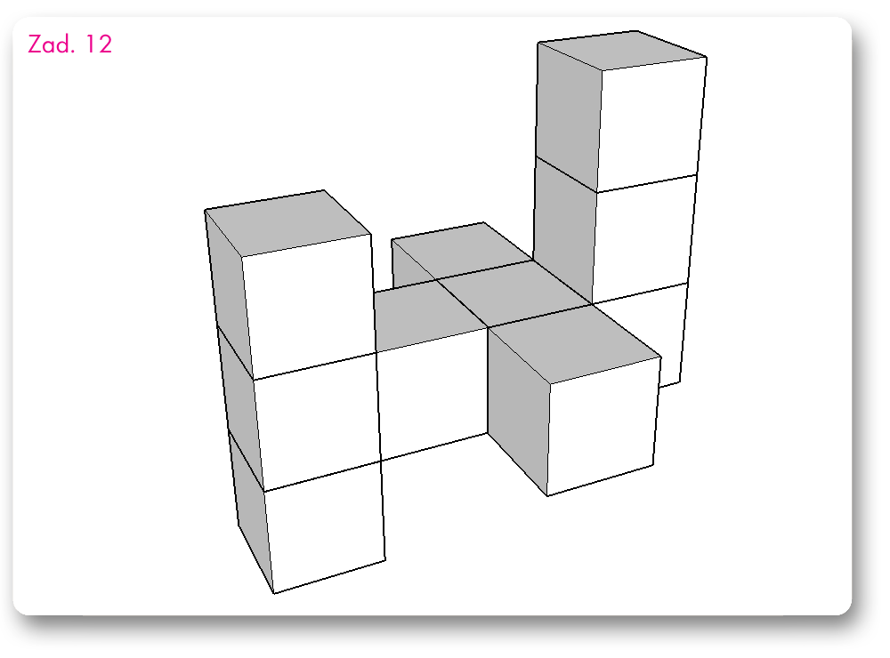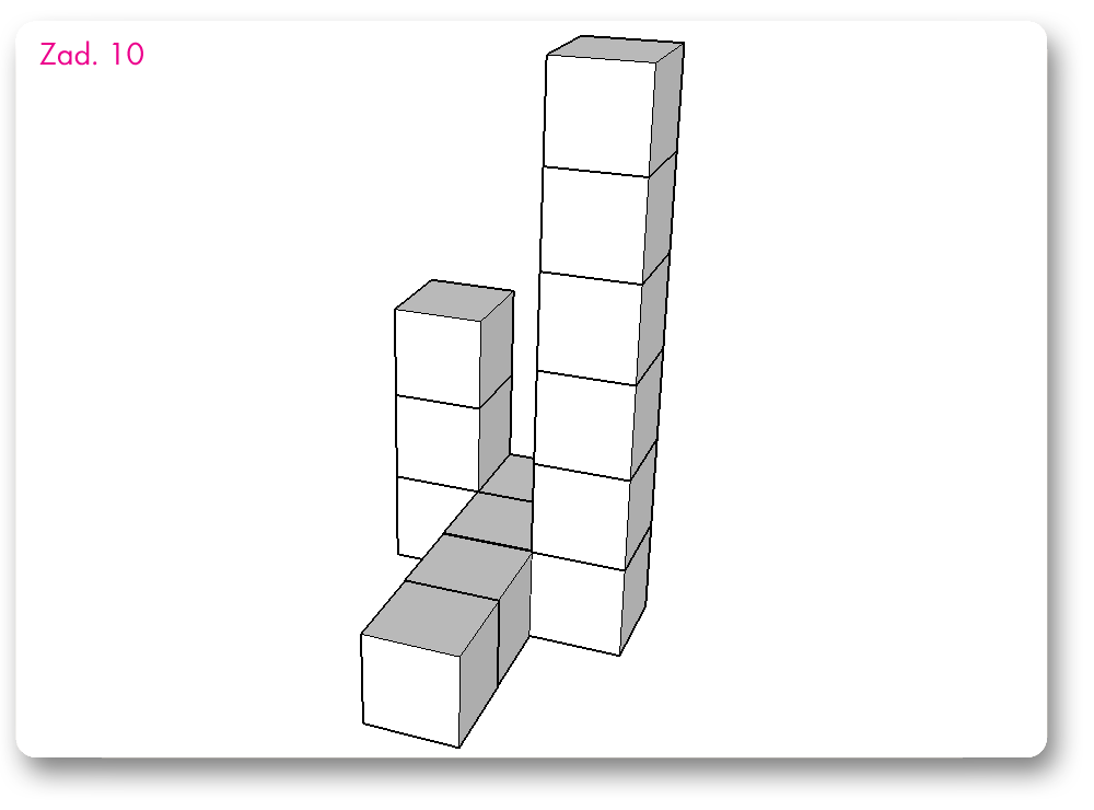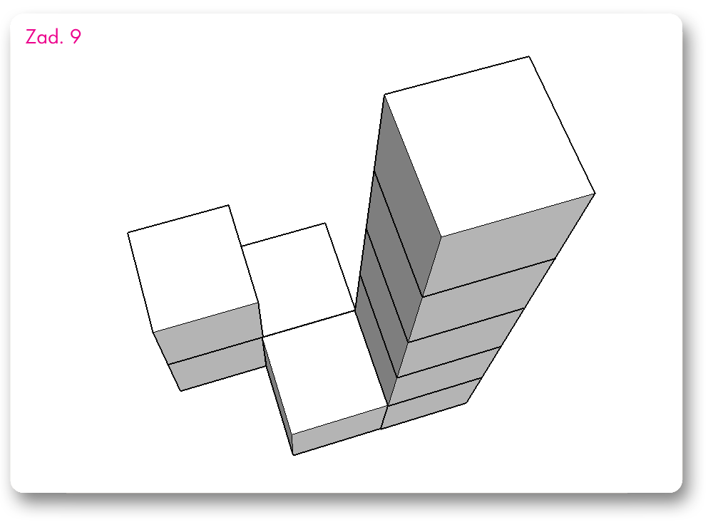 Zadania, które znajdują się poniżej, to jeden z najpopularniejszych typów zadań geometrycznych na świecie (w Polsce można go spotkać na egzaminach ósmoklasistów). Sprawdza przede wszystkim wyobraźnię przestrzenną, przy czym ta sama treść dotyczy ogromnej ilości konkretnych ustawień klocków na rysunku.