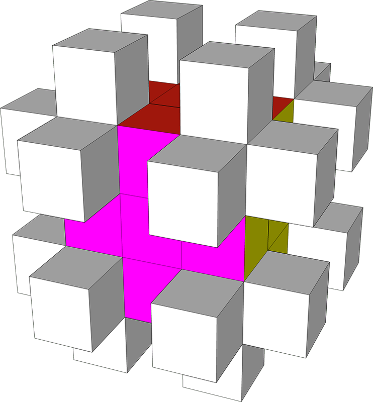 Aby móc sobie to lepiej wyobrazić, zobacz poniżej jak to wyglada w interaktywnym 3D - obracaj, przybliżaj, a prawym klawiszem myszki przesuwaj ( wystające odcinki pozwolą na lepszą orientację przy obrotach bryły, a lekkie odstępy pomiędzy kostkami pozwolą lepiej widzieć 3D).