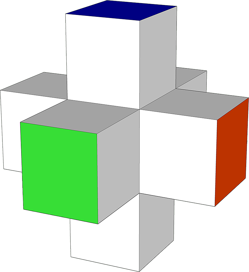 Aby móc sobie to lepiej wyobrazić, zobacz poniżej jak to wyglada w interaktywnym 3D - obracaj, przybliżaj, a prawym klawiszem myszki przesuwaj (prawie wszystkie klocki są w jednym kolorze aby nie rozpraszać mózgu, wystające odcinki pozwolą na lepszą orientację przy obrotach bryły, a lekkie odstępy pomiędzy kostkami pozwolą lepiej widzieć 3D).