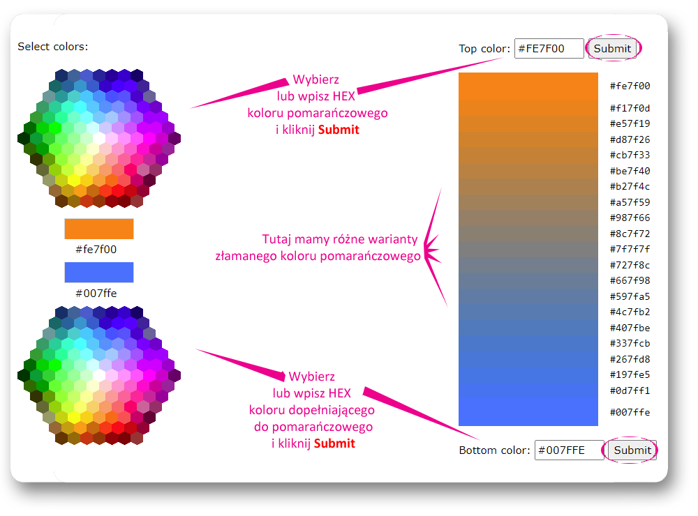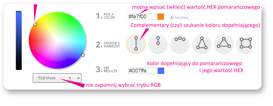 Nasz kolor pomarańczowy zapisany w ten sposób to #F23B1C (mogą być małe litery, czyli #f23b1c). Taki zapis koloru łatwiej jest np. kopiować i wklejać (a będzie ci to potrzebne w rozwiązywaniu zadań).