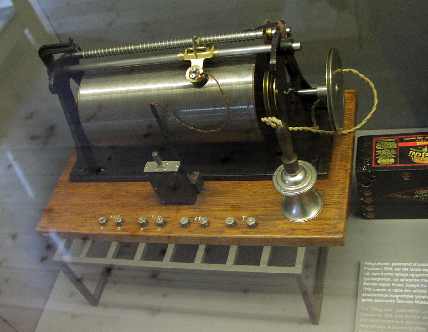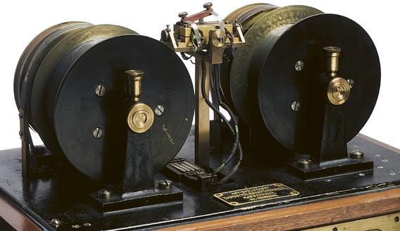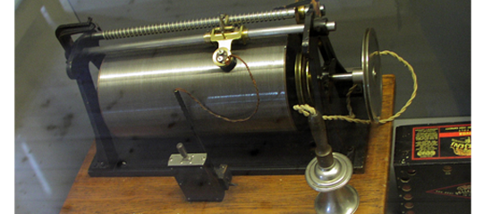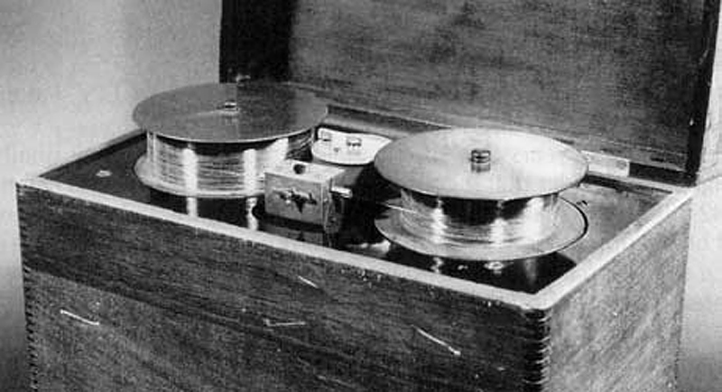 TELEGRAFON - tak nazwał Poulsen pierwszy magnetofon, w którym dźwięk był magnetycznie zapisywany na drucie (źródło: Wikipedia)