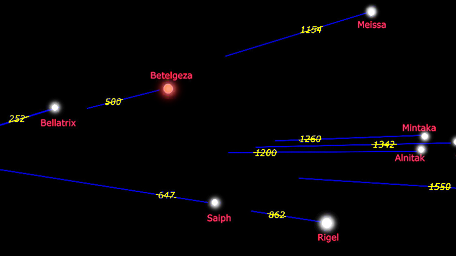 Zobacz przy okazji jak wygląda Orion z boku i jakie są odległości do pokazanych gwiazd - LINK