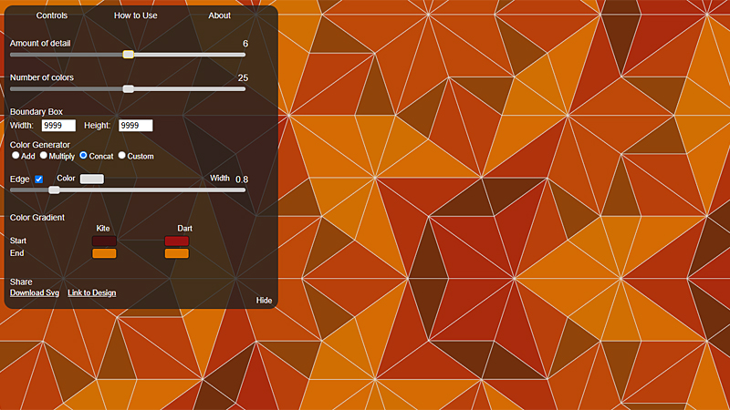 Druga strona (LINK) podobnie jak wcześniejsza, pozwala na zmianę gęstości, kolorów i krawędzi mozaiki.