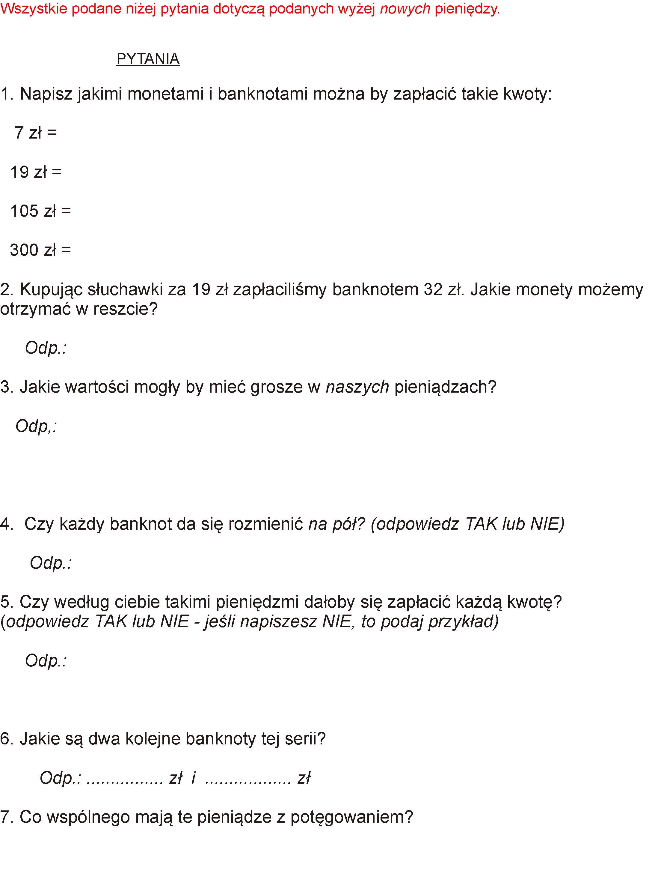 W drugiej wersji tego zadania, można wykorzystać gotowy szablon, na którym po wydrukowaniu narysujesz swój banknot - jest poniżej gotowy do kopiuj/wklej.