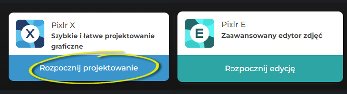 Gdy otworzy się strona, wybierz Pixlr X, bo chociaż w sąsiednim Pixlr E też można pracować na warstwach, to nasze początkowe czynności byłyby tam mniej intuicyjne.