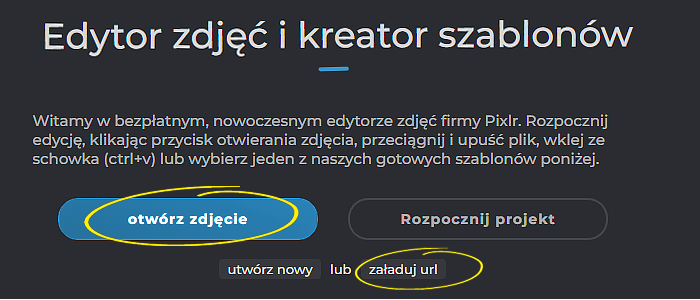 Oprócz klasycznego pobrania zdjęcia z naszego komputera, mamy też możliwość pobrania grafiki z innych stron internetowych (załaduj url); wtedy trzeba najpierw na wybranym zdjęciu kliknąć PRAWY przycisk myszy i wybrać Kopiuj adres obrazu.