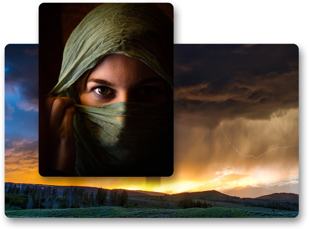 Poniżej przykład efektów uzyskanych z różnych trybów przenikania dwóch zdjęć (źródło zdjęć: pixabay).