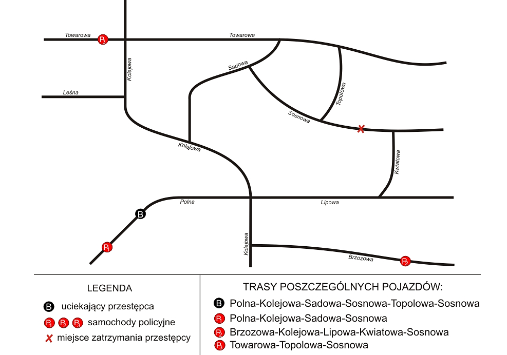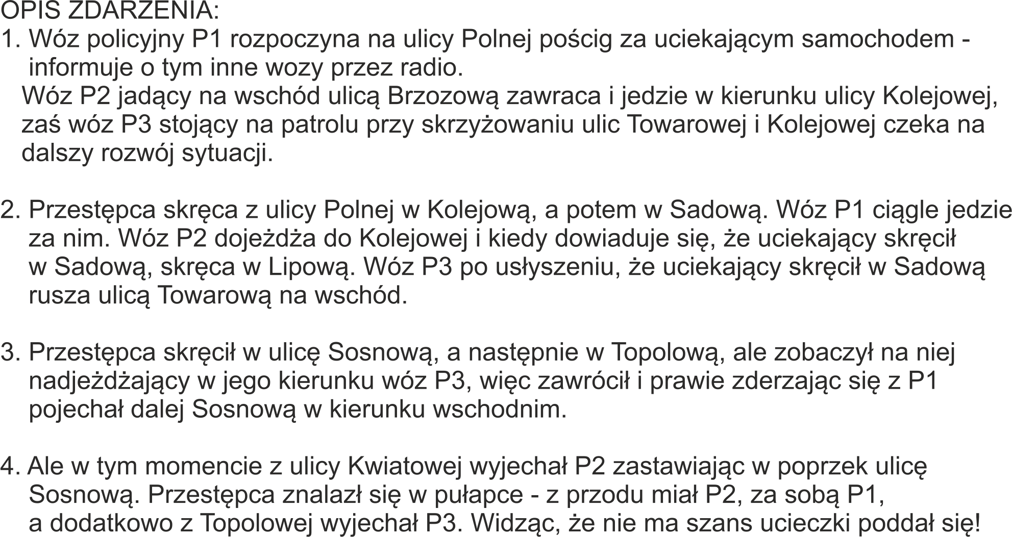 Skopiuj plan ulic do PowerPoint-a i przedstaw animacją przebieg pościgu.