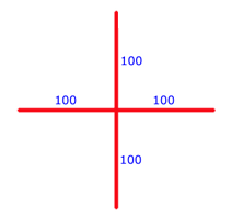Napisz program, który narysuje podaną obok figurę (wymiary i kolor na rysunku, a grubość pisaka 3).