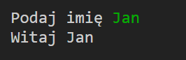 Napisz program, który zapyta o imię, a następnie napisze "Witaj" i tu wstawi wpisane imię.