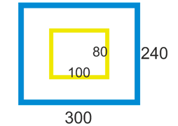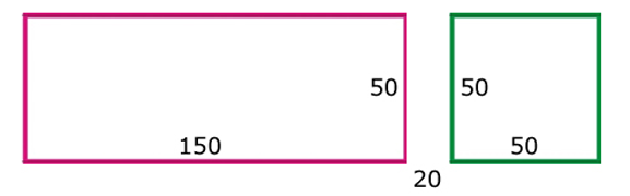 Napisz program, który narysuje pokazane obok figury (wymiary i kolory na rysunku, a grubość pisaka ustaw sam (-a)). Obie figury mają być w całości widoczne w okienku programu.