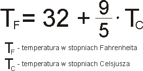 Napisz program, który obliczy temperaturę w stopniach Fahrenheita, kiedy wcześniej podamy mu temperaturę w stopniach Celsjusza (obok wzór zamieniający TF na TC).