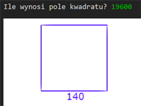 Napisz program, który narysuje kwadrat o polu powierzchni podanym przez użytkownika i podpisze na rysunku długość boku tego kwadratu.