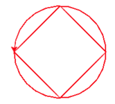 Napisz program, który narysuje okrąg o losowym promieniu, a następnie wpisze w niego kwadrat (zobacz rysunek - wierzchołki kwadratu leżą na okręgu).