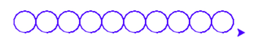 Napisz program, który narysuje poziomo 10 stycznych do siebie niebieskich okręgów o promieniu 15.