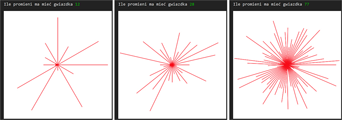 Napisz program, który narysuje "gwiazdę" składającą się z losowej długości promieni, przy czym o ich ilość program ma najpierw zapytać użytkownika.