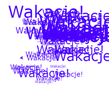 Napisz program, który stworzy w okienku np. 50 napisów "Wakacje!", przy czym program za każdym razem wylosuje miejsce, w którym powstanie napis oraz wielkość fontów.