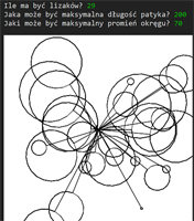 Napisz program, który narysuje wychodzące ze środka okienka losowe "lizaki" (czyli "patyk i na końcu kółko"), ale najpierw zapyta: