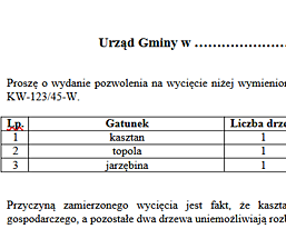 Pismo do Urzędu Gminy/Miasta dotyczące wycinki drzewa.