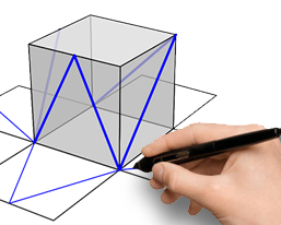 Rysowanie odcinków: siatka->sześcian i sześcian->siatka.