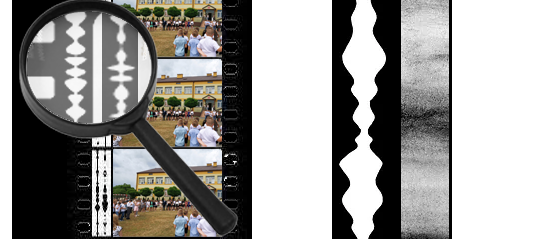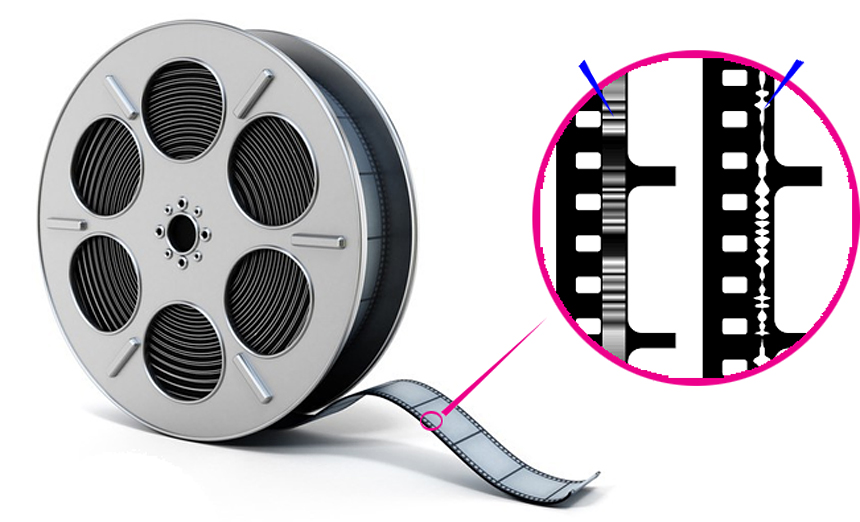 Zapisy dźwięku na taśmie filmowej mogą być realizowane na różne sposoby, ale dwa z nich są najbardziej popularne. Na poniższym zdjęciu widać w powiększeniu ścieżki zapisanego dźwięku - ten po lewej metodą gęstościową, a drugi metodą powierzchniową.