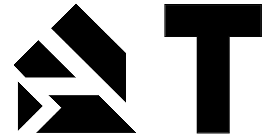 Z widocznych po prawej 4 kawałków należy ułożyć dużą literę T (też po prawej) i oczywiście nie wolno nakładać kawałków jeden na drugi, obcinać, itp.