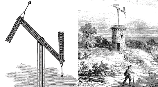 Największe uznanie zdobył francuski telegraf Clauda Chappe (od 1790 r.) - 3 ruchome belki, które obracano ze skokiem 45 stopni. Umieszczano je na specjalnych wieżach lub dachach budynków w odległościach od kilku do kilkunastu kilometrów. Obrotów dokonywano zestawem korb i sznurów.