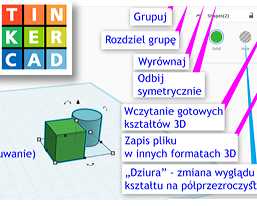 W internecie jest wiele tutoriali pokazujących pracę w tym programie, a te poniżej są próbą zgromadzenia w jednym miejscu materiałów na pierwsze lekcje z Tinkercad - "ściągawki", podstawowe ćwiczenia i sprawdzone tematy na całolekcyjne projektowanie.