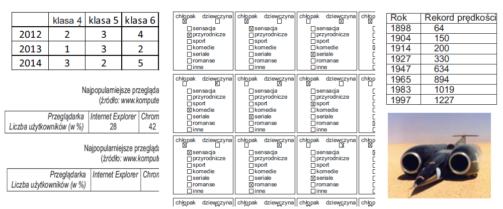 Gotowe ćwiczenia do tworzenia wykresów w arkuszach kalkulacyjnych lub aplikacjach online ( np. tej ).