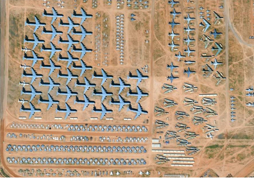Zad. 5 W amerykańskim mieście Tuscon (stan Arizona) znajduje się największe na świecie cmentarzysko wycofanych z użycia samolotów. Pokaż jego fragment na widoku z ulicy .